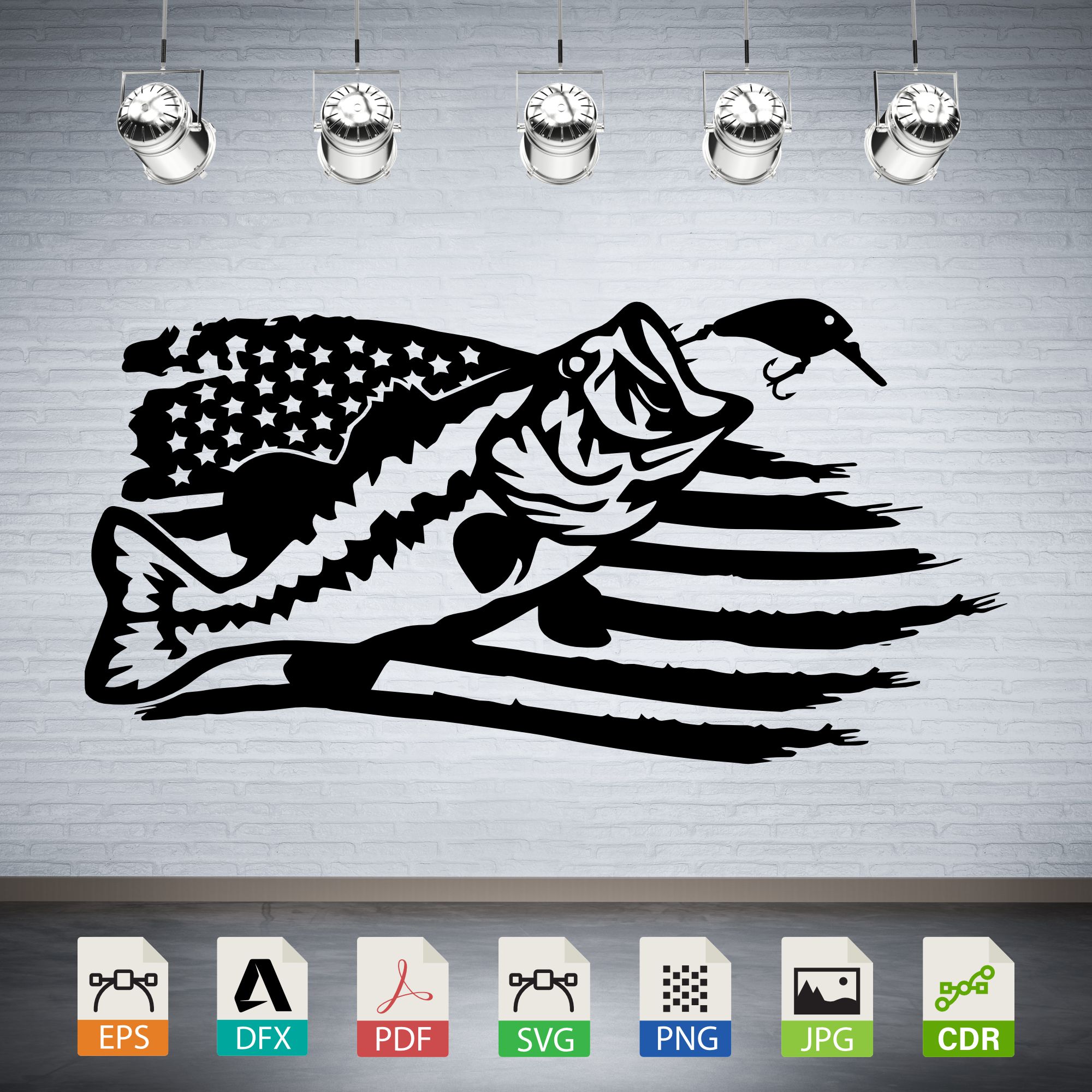 Instantly download digital vector files (SVG, DXF) of a Bass Fish American Flag Lure Vector CNC Laser Cut File, perfect for laser cutting, CNC routing, and engraving. Create wall art, stickers, decals, silhouettes, and more. Ensure machine compatibility before purchase. Digital download only; no physical item is included. For personal use only.