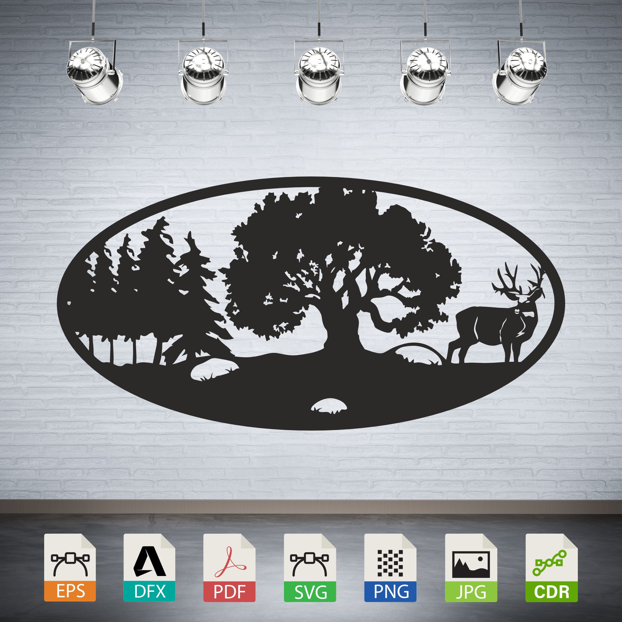 Instantly download digital vector files (SVG, DXF) of a Deer in Forest Landscape Vector CNC Laser Cut File, perfect for laser cutting, CNC routing, and engraving. Create wall art, stickers, decals, silhouettes, and more. Ensure machine compatibility before purchase. Digital download only; no physical item is included. For personal use only.