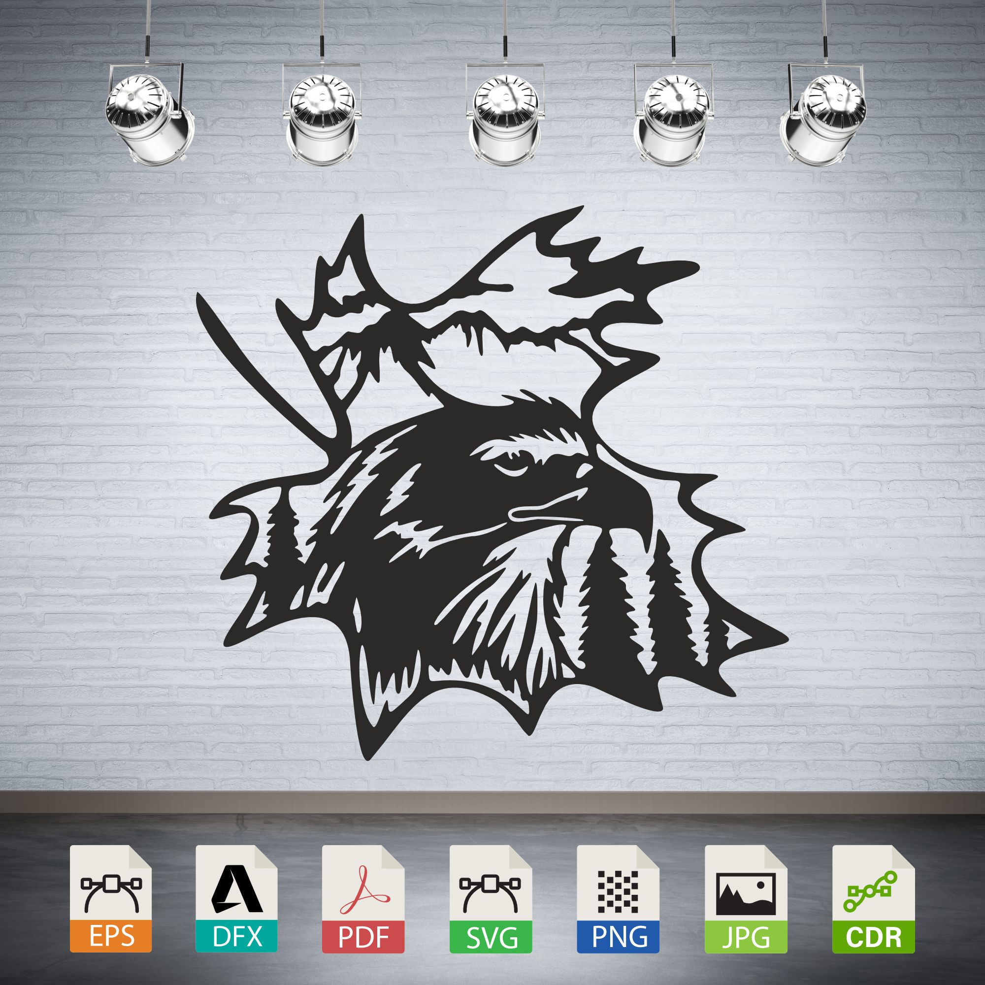 Instantly download digital vector files (SVG, DXF) of a Eagle Head Mountain Scene Vector CNC Laser Cut File, perfect for laser cutting, CNC routing, and engraving. Create wall art, stickers, decals, silhouettes, and more. Ensure machine compatibility before purchase. Digital download only; no physical item is included. For personal use only.