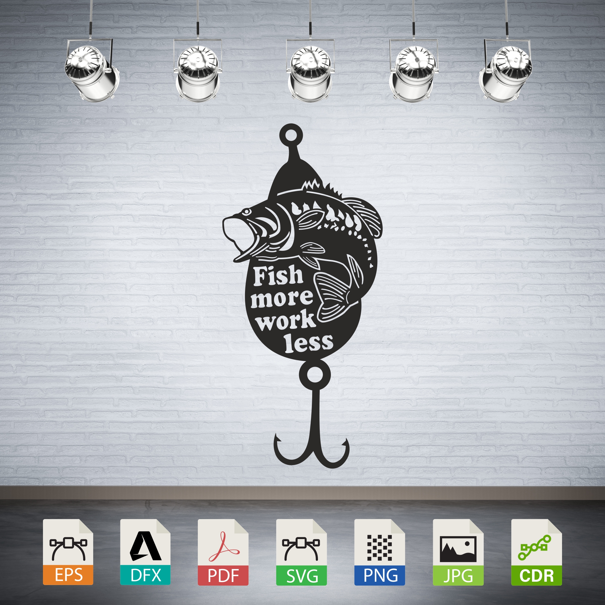 Instantly download digital vector files (SVG, DXF) of a Fish More Work Less Vector – Fishing Quote Design, perfect for laser cutting, CNC routing, and engraving. Create wall art, stickers, decals, silhouettes, and more. Ensure machine compatibility before purchase. Digital download only; no physical item is included. For personal use only.