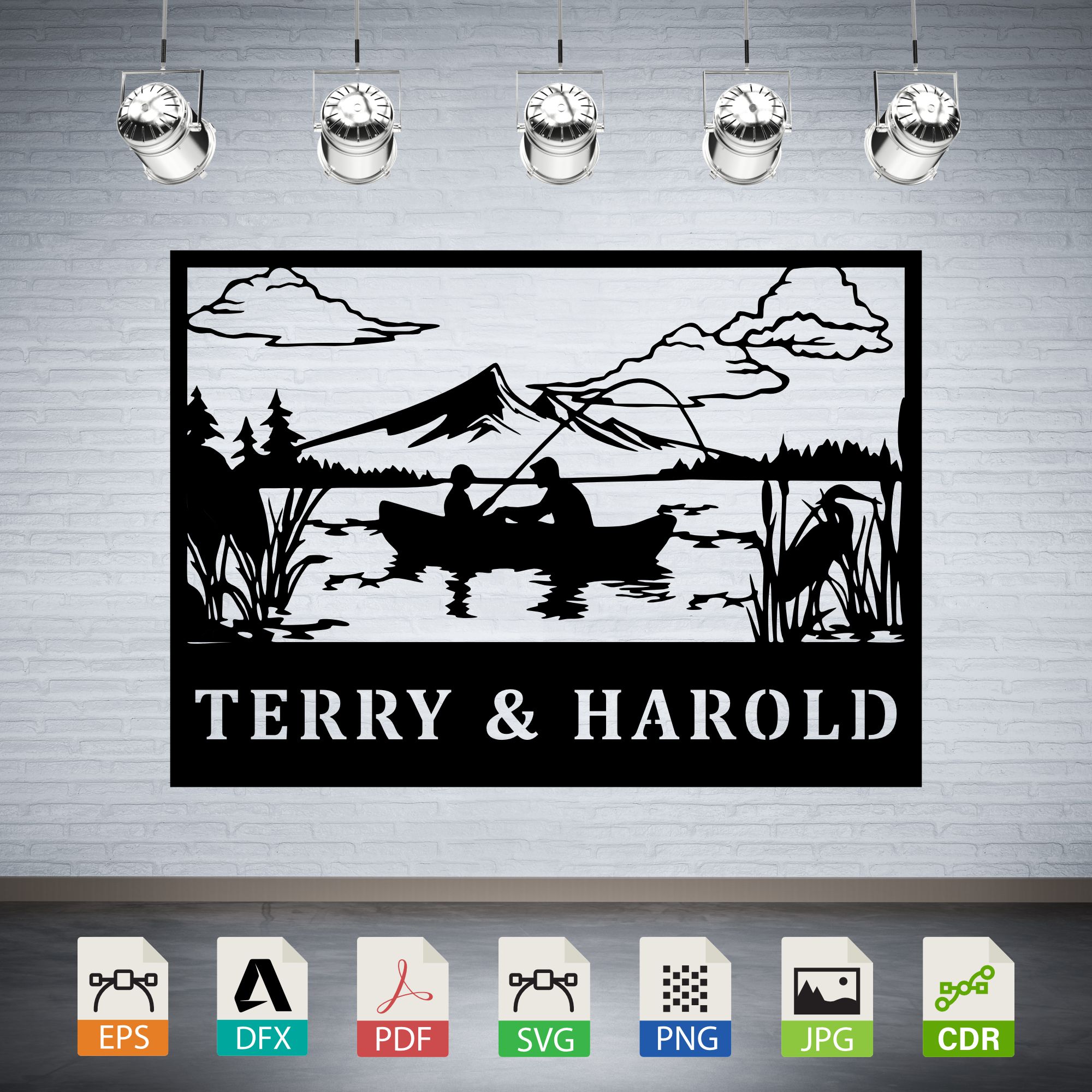 Instantly download digital vector files (SVG, DXF) of a Fishing Boat Lake Heron Scene Vector, perfect for laser cutting, CNC routing, and engraving. Create wall art, stickers, decals, silhouettes, and more. Ensure machine compatibility before purchase. Digital download only; no physical item is included. For personal use only.